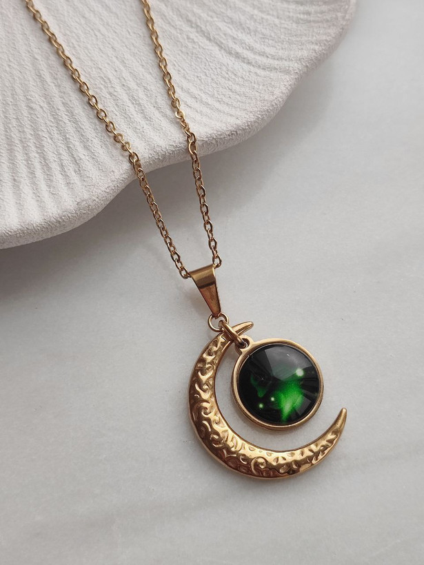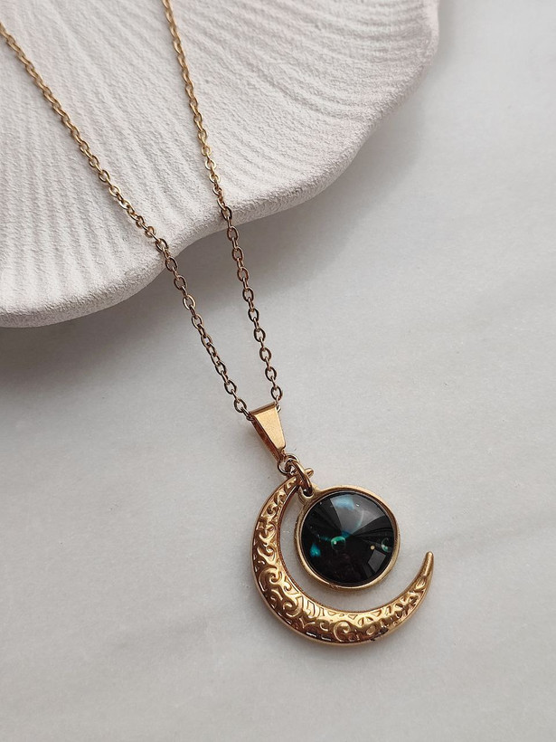 گردنبند طرح ماه همراه با زنجیر بدون تغییر رنگ و ریزش سنگ